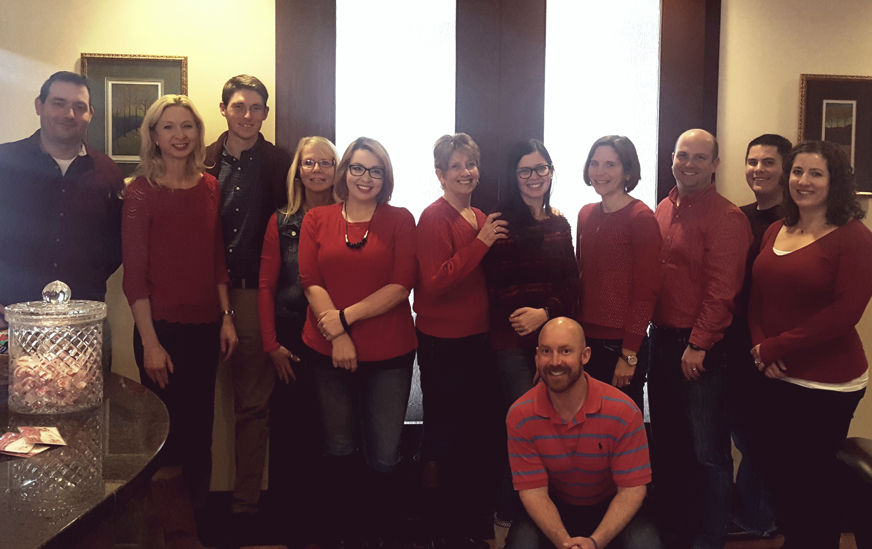 The Morgantown office wore red on Feb. 2 for the American Heart Association's National Wear Red Day. Pictured standing from left to right are Matthew Chase, Ashley Harman, Zane Mikesell, Linda Flowers, Megan Cummons, Connie Onken, Andrea Berg, Wendy Adkins, Seth Hayes, Mark Imbrogno and Kalyn Noechel. Kneeling in front is Brian Jett. February 2, 2018 |