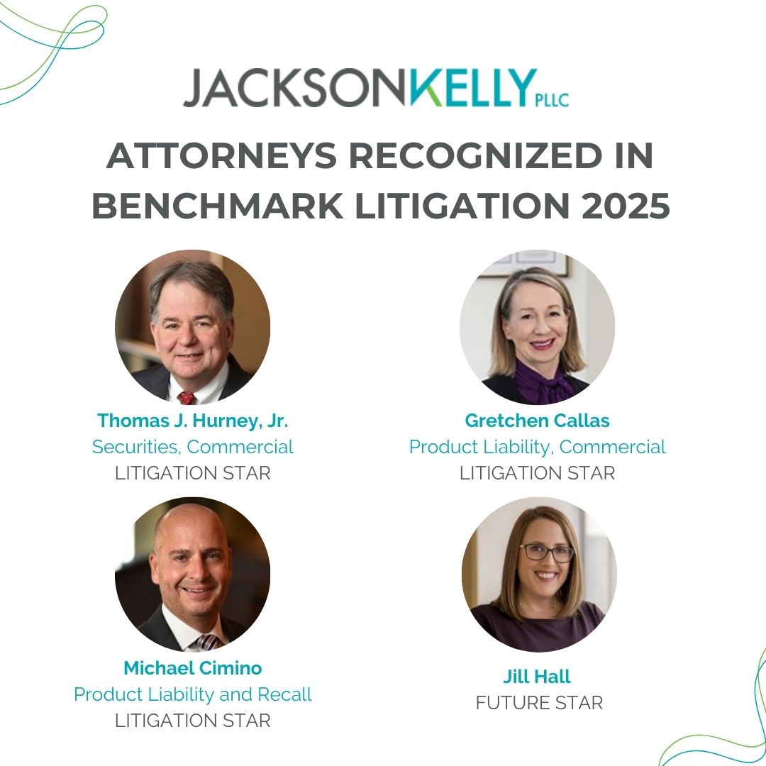 Jackson Kelly is proud to announce that attorneys Thomas Hurney, Jr., Gretchen Callas, Michael Cimino, and Jill Hall have been recognized in the 2025 edition of Benchmark Litigation.