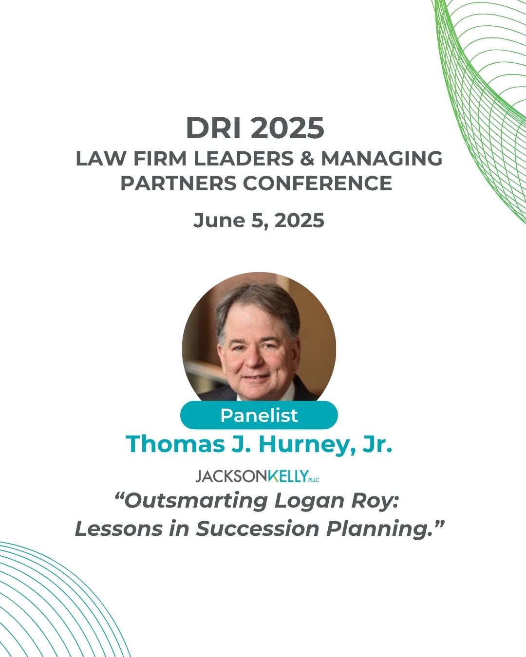 Jackson Kelly attorney Thomas J. Hurney, Jr. will serve as a Panelist for, "Outsmarting Logan Roy: Lessons in Succession Planning."