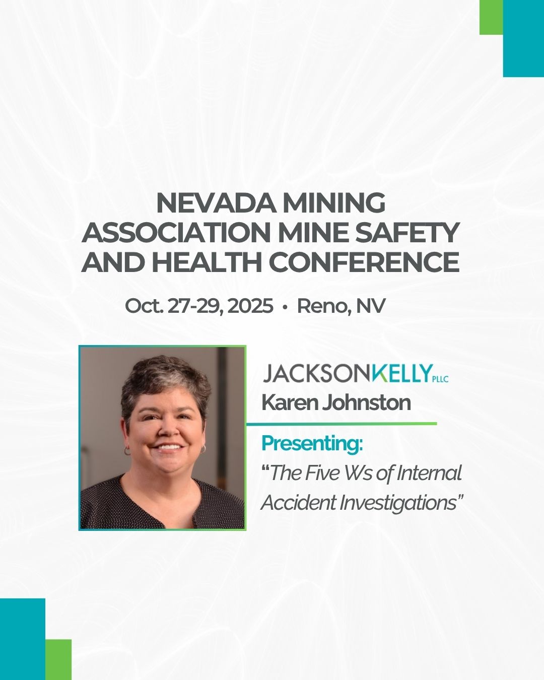 Jackson Kelly attorney Karen Johnston will be presenting on “The Five Ws of Internal Accident Investigations.”